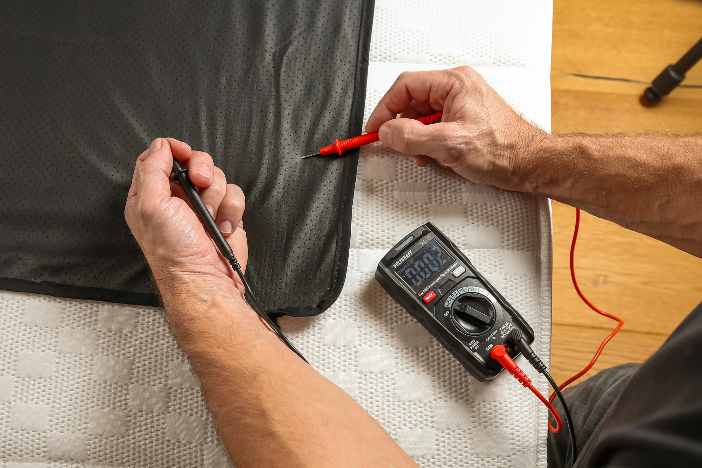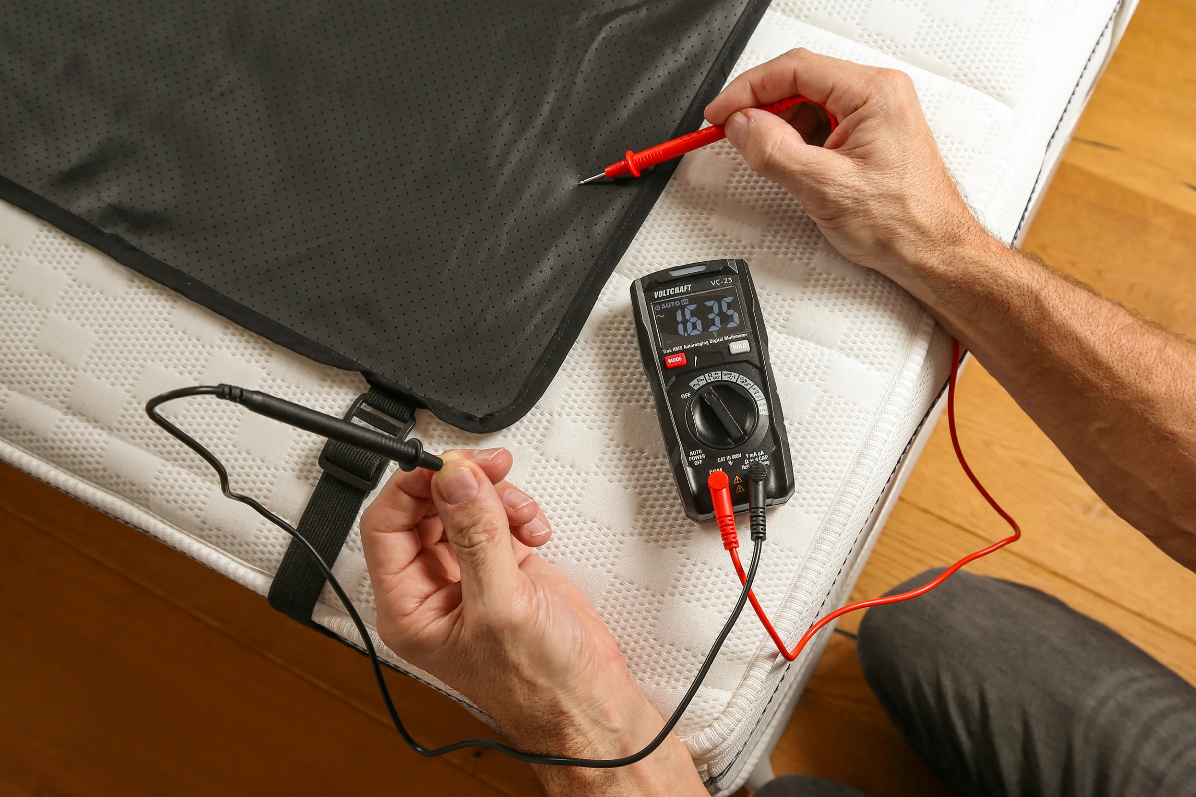 Entspannt schlafen: Die Erdungsprodukte von ErdVital befreien den Körper von elektrischer Spannung. Kontrollieren Sie den Effekt mit dem Multimeter.