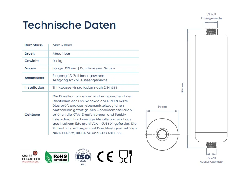 Das Ergebnis ist reines, weicheres und hautschonendes Duschwasser – ideal für Haut, Haare und ein spürbar angenehmes Duscherlebnis.