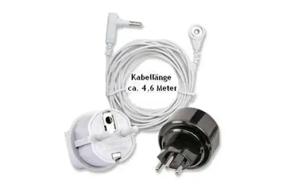 Schliessen Sie unsere Erdungsprodukte an das Erdungskabel an: Komplettsett mit Schweizer Stecker für den Sofortstart, zum Beispiel mit der Erdungsmatte oder der Erdungs-Sitzauflage. Dieses Komplett-Set enthält alles, was du für den sicheren Anschluss deiner Erdungsprodukte brauchst.