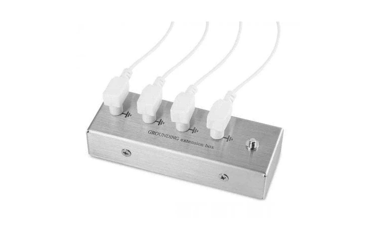 Der Erdungs-Verteiler aus gebürstetem Edelstahl ermöglicht es, bis zu vier Erdungsprodukte gleichzeitig zu verbinden. Ideal für Anwender, die mehrere Erdungsmatten, Fixleintücher oder Patches gleichzeitig nutzen möchten. Für Räume, in denen mehrere Leute ein Erdungsprodukt nutzen – so müssen Sie nicht jedes Produkt extra an eine Steckdose anschliessen.